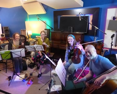 Heather's string quartet, OXUS specialises in finding inventive, approachable ways to present repertoire to a range of audiences, and frequently performs with other artists and media in works such as Steve Reich’s Different Trains with electronics, The Juliet Letters by Elvis Costello and The Brodsky Quartet, Arts Council funded collaborative projects with installation artist Pam Foley, and even recording for a Japanese department store at Abbey Road Studios!